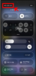 1. 갤럭시 화면 상단을 아래로 한 번 내리면 빠른 설정창이 나타납니다.
