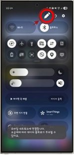 - 갤럭시 화면 상단을 아래로 한 번 내리면 빠른 설정창이 나타납니다.