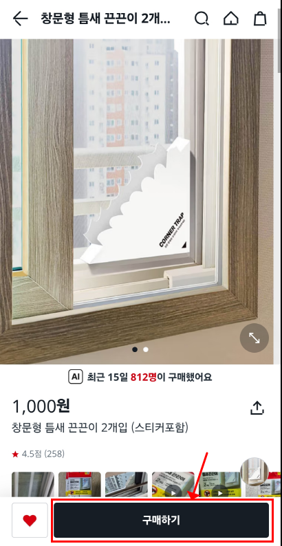2. 검색창에 구매하고 싶은 제품명을 입력합니다. 예: “창문 끈끈이”, “진공 보관용기”