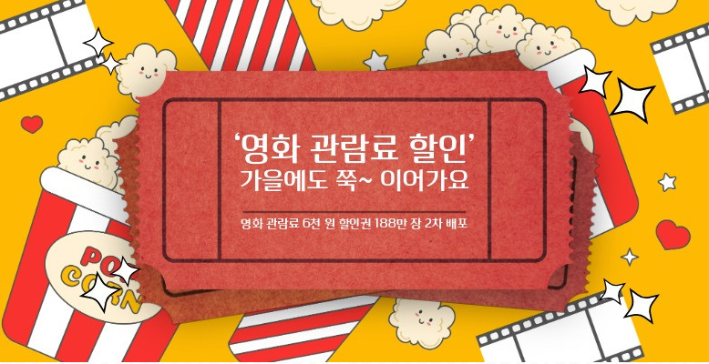 9월 8일(월) 오전 10시 정각, 빠르게 예매·결제 완료해 CGV, 롯데시네마, 메가박스, 씨네큐 등에서 할인 혜택 꼭 챙기세요!