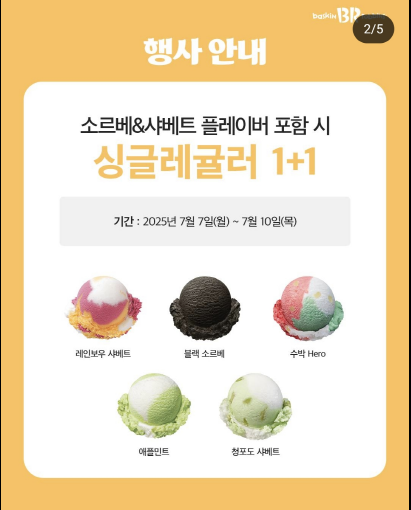 소르베/샤베트 포함 1+1 | 7/7 ~ 7/10 | 싱글레귤러 하나 더! |