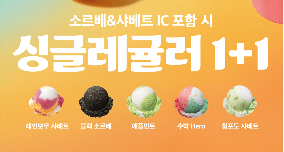 🍨 소르베·샤베트 포함 싱글레귤러 1+1 이벤트,