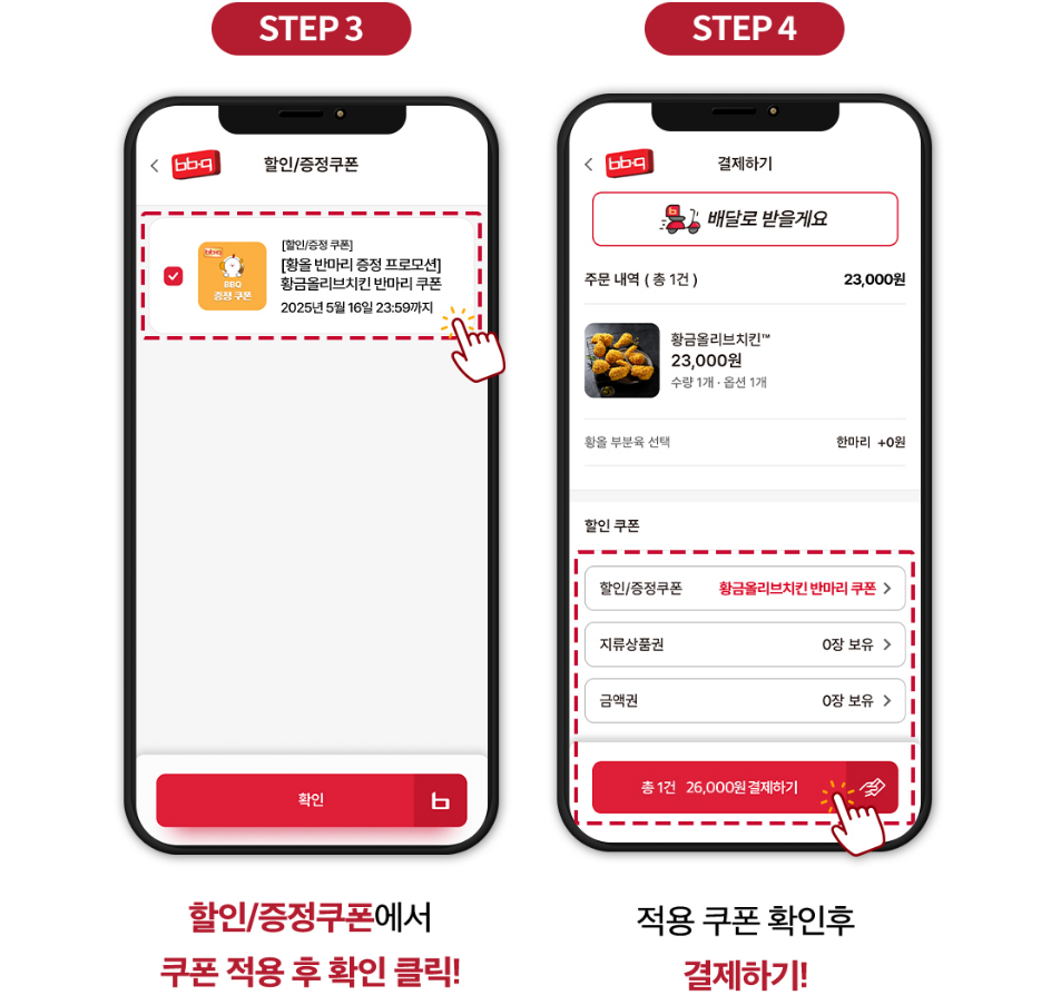 👉 BBQ 앱 또는 웹사이트에서 치킨 1마리 이상 주문 시