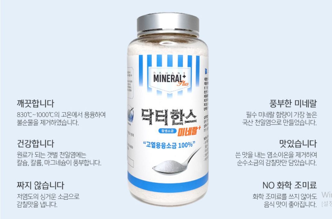 이 수치는 시중 소금과 비교했을 때 미네랄 함량이 압도적으로 높다는 뜻입니다.