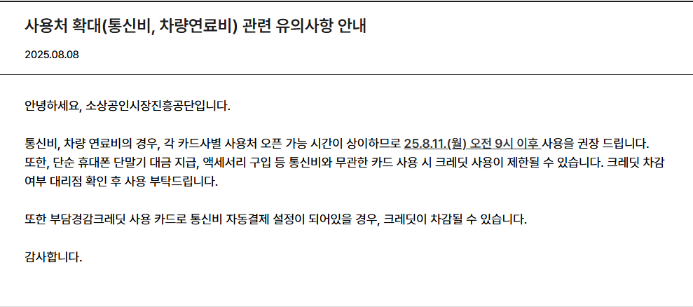 부담경감 크레딧은 소상공인을 위한 지원금입니다. 하지만, 여러가지 이유로 사용처가 제한되어 있어 많은 민원이 있었다고 합니다. 이 의견을 수렴하여 공과금과 4대보험 외에 통신비와 차량연료비까지 결제가 가능하다고 합니다. 해당 내용을 공유드립니다.