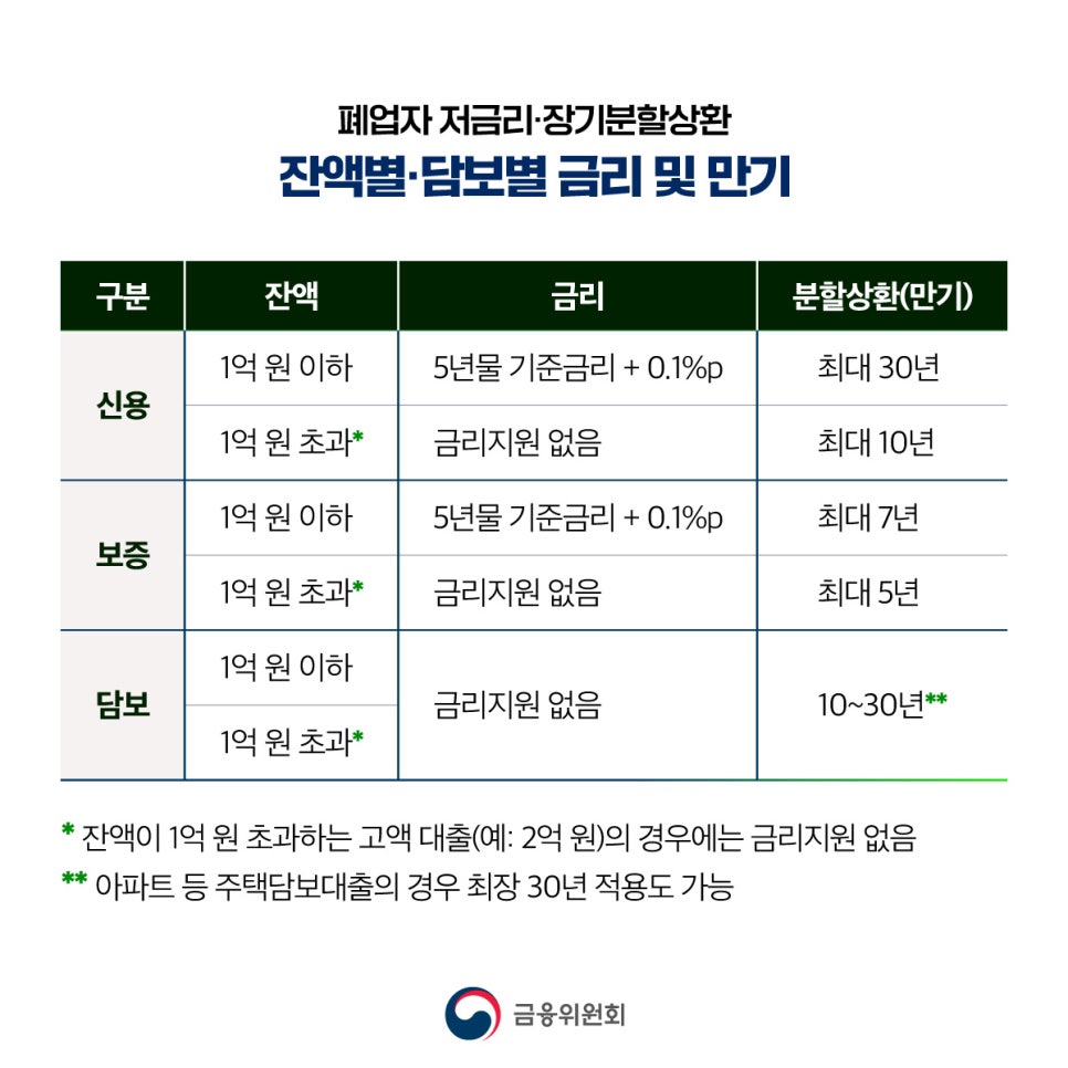 ✅ 2. 폐업(예정) 소상공인 저금리·장기 대환대출