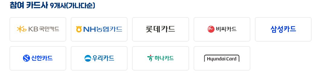 💳 참여 카드사 9곳 (가나다순)