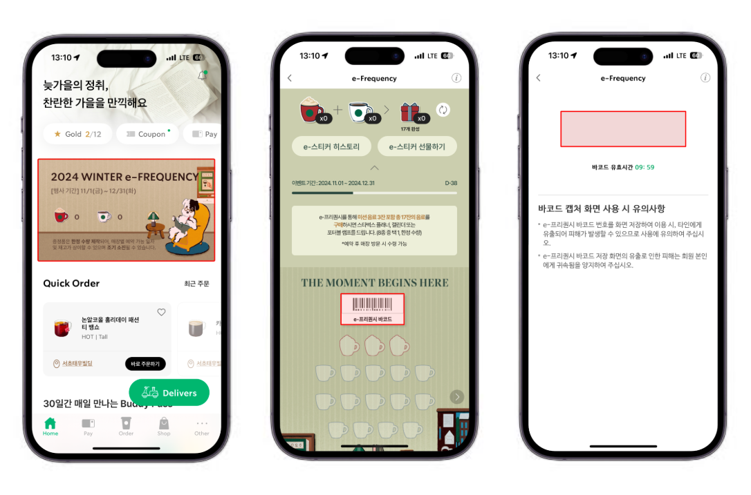 → 프리퀀시는 ‘제조 음료’만 해당됩니다. 병 음료, 마트/편의점 음료는 제외됩니다.