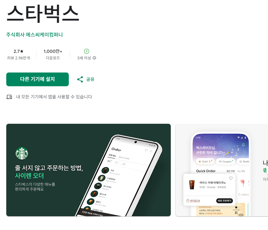 바로 스타벅스 코리아 앱을 설치하는 것입니다.