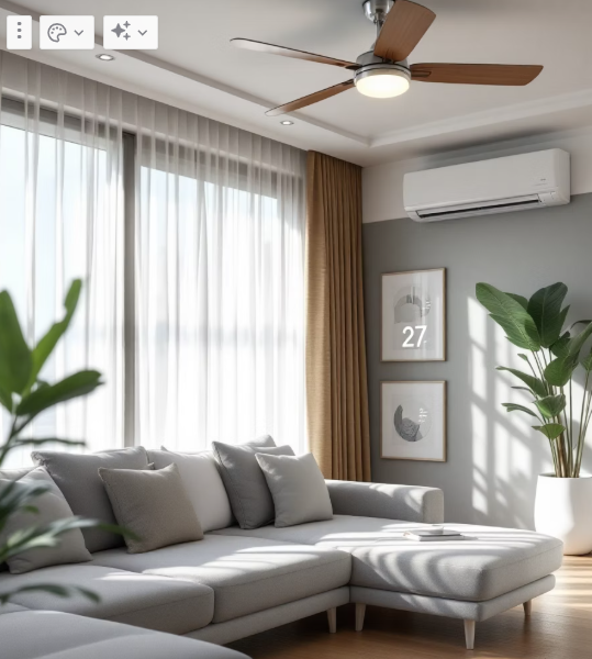 에어컨만 켜는 것보다 선풍기를 같이 돌리면 공기 순환이 빨라지고 체감 온도는 낮아집니다.