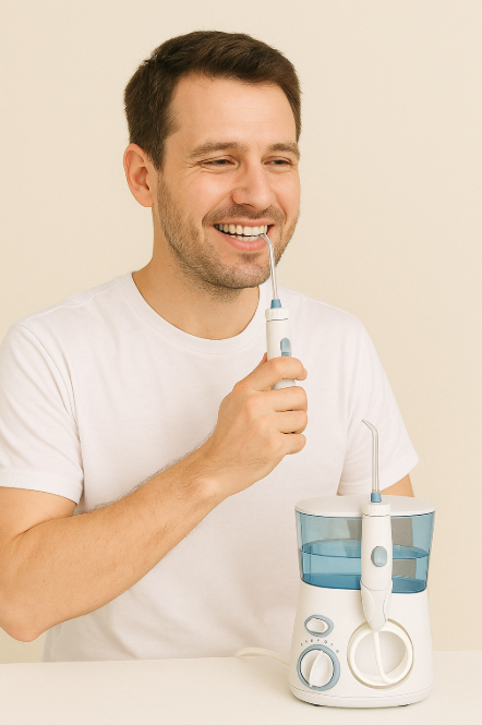 일반 칫솔이나 치실로 닿기 어려운 곳까지 세정할 수 있고, 잇몸을 부드럽게 자극하여 혈류를 촉진하고 염증을 줄이는 역할도 합니다.