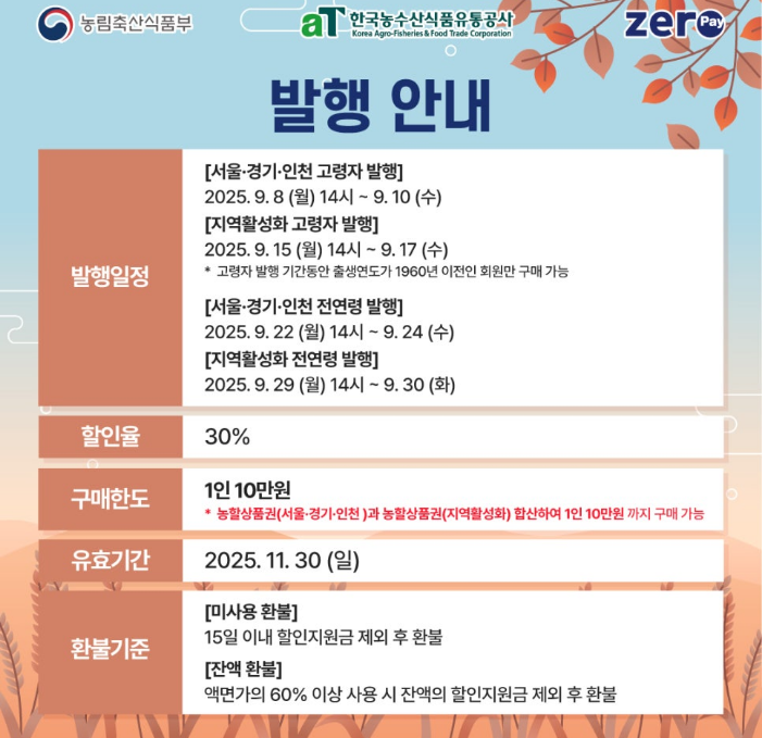 - 농축산물 할인 기간: 2025년 9월 15일 ~ 10월 5일