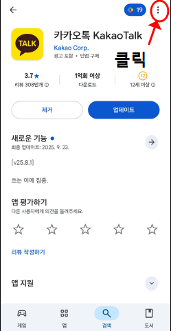 이렇게 설정하면 카카오톡 앱은 자동으로 업데이트되지 않습니다.