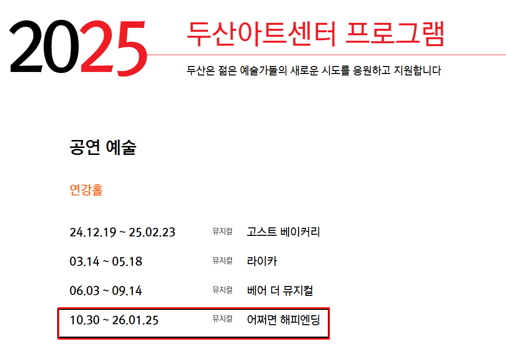 - 공연 기간: 2025년 10월 30일(목) ~ 2026년 1월 25일(일)