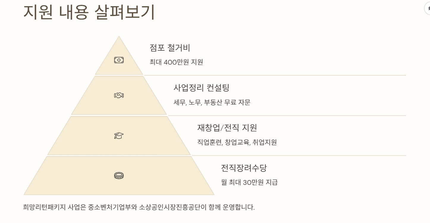 특히, 2025년에는 최대 400만 원의 철거비, 재창업 준비를 위한 교육, 전직 장려수당 등 실질적인 혜택이 대폭 강화되었습니다.