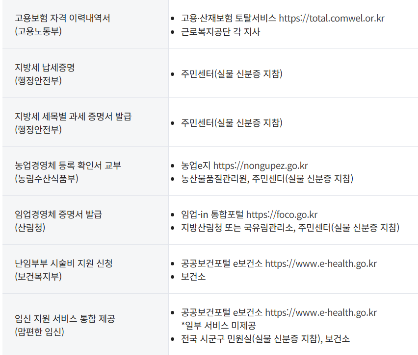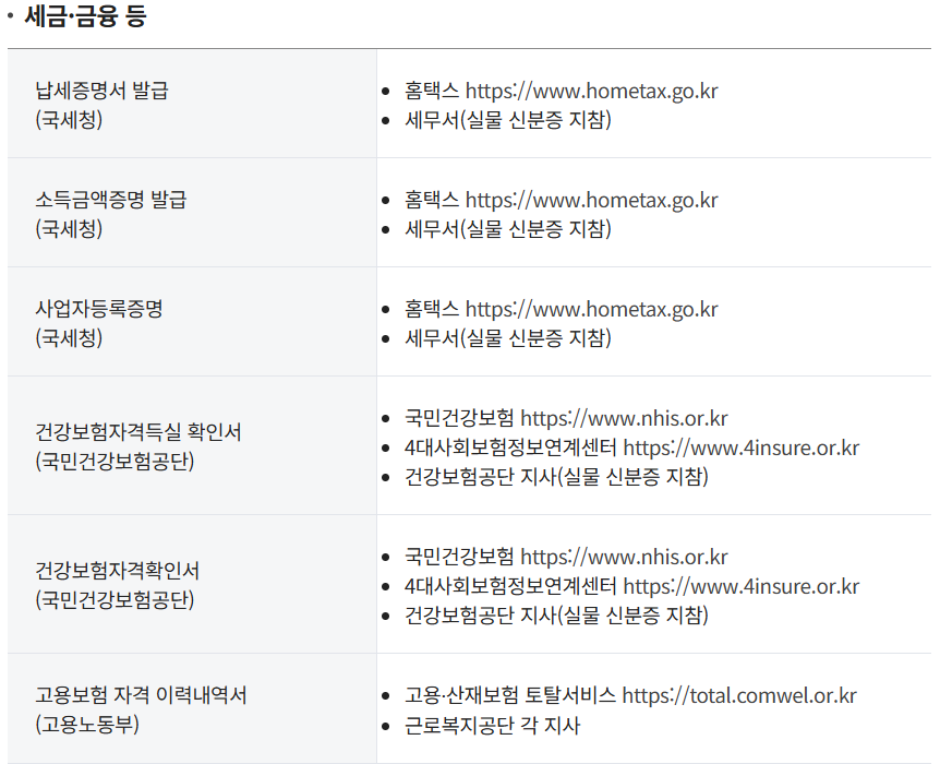 아래는 정부24를 이용하지 않고도 대체 발급 가능한 방법을 항목별로 정리한 내용입니다.