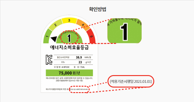 👉 에너지효율 1등급 제품만 가능