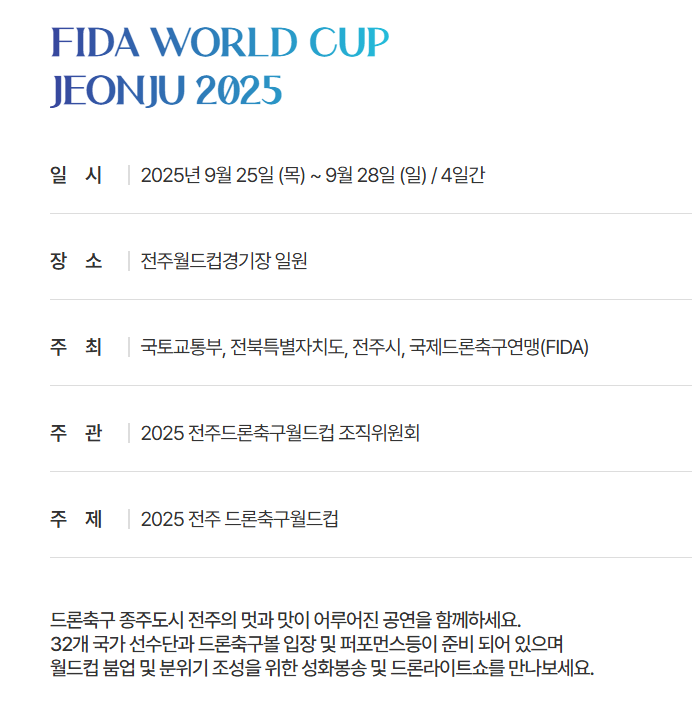 | 행사명 | 2025 전주 드론축구 월드컵 |